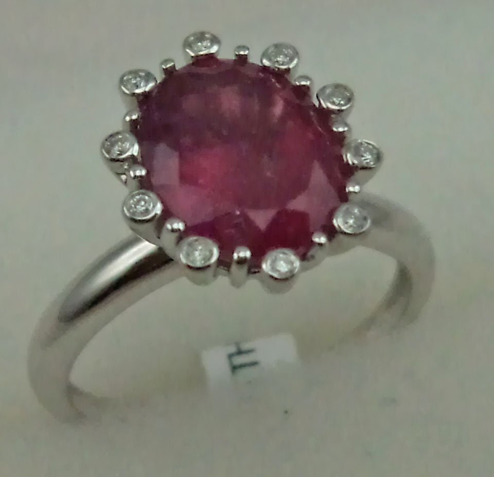 10 Karat White Gold Daimond Ring With Tourmaline Stone