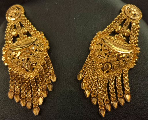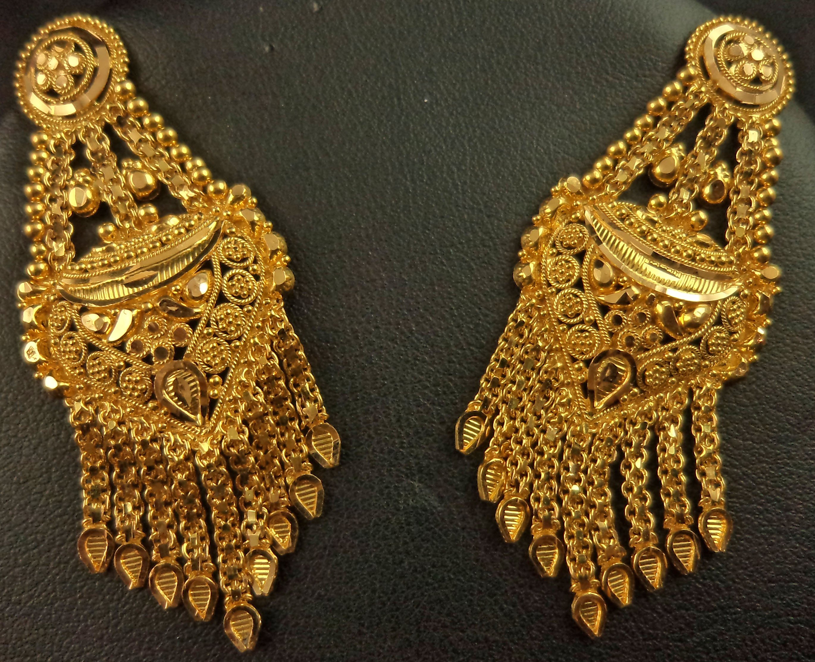 22 Karat Filigree Long Chain Hanging Earring - 22 : Gold Jewellery-Earrings : Lotus Gold