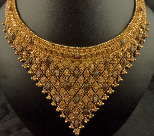 22 Karat Filigree Meenakari V Shaped Mat Design Chain