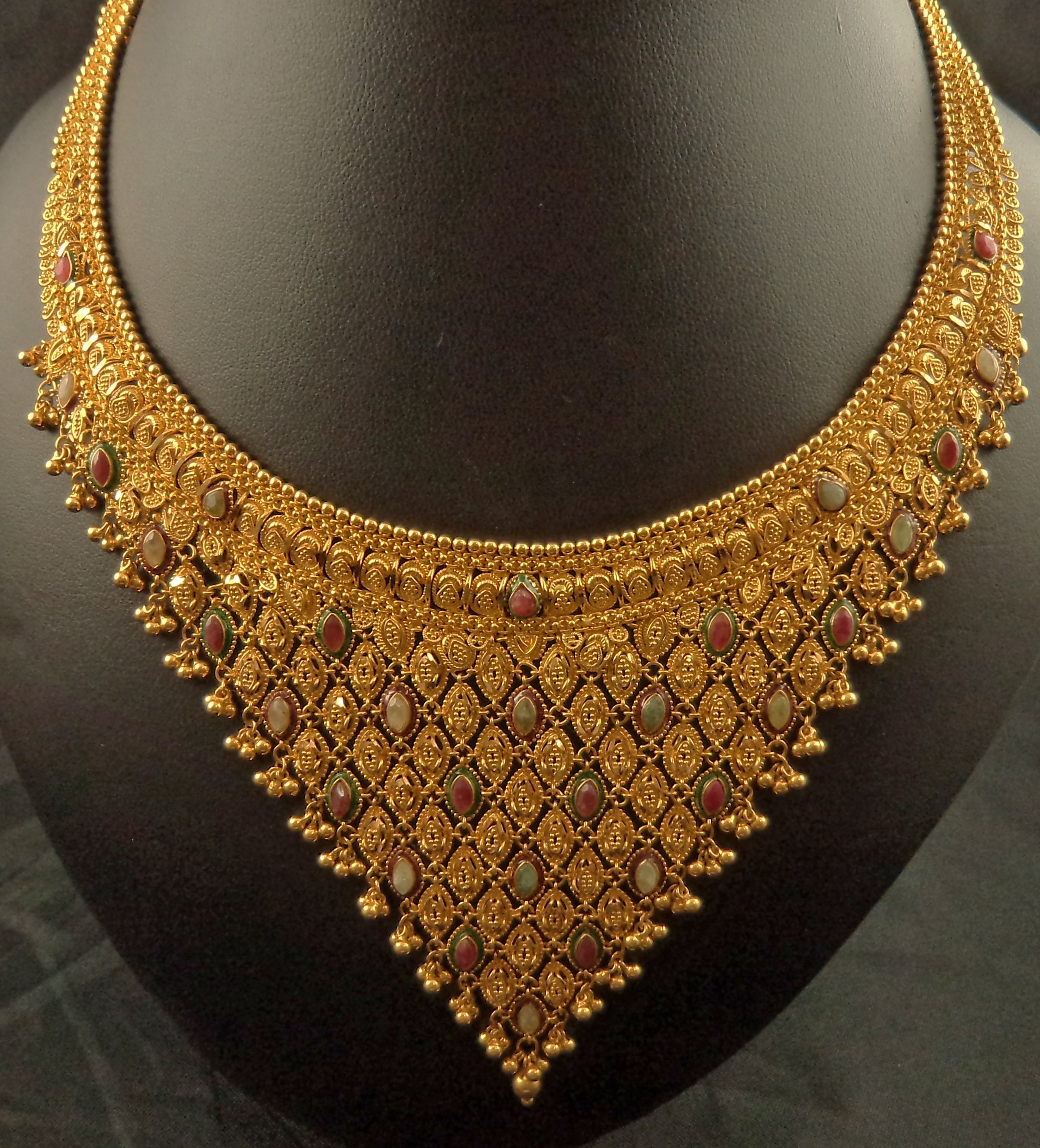 22 Karat Filigree Meenakari V Shaped Mat Design Chain - 22 : Gold Jewellery-Necklaces : Lotus Gold