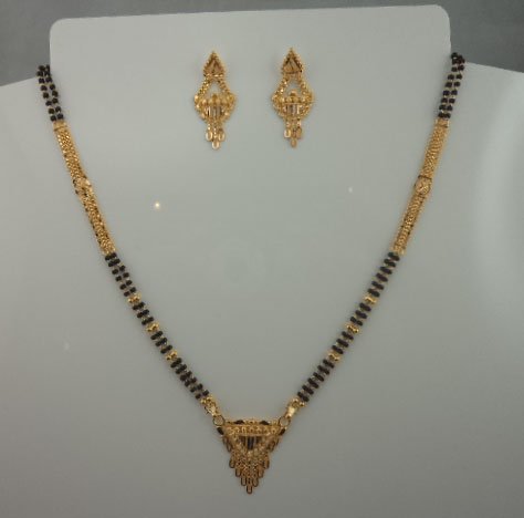 2 Row Gold Mangalsutra with Earring Set - 20 : Gold Jewellery-Mangalsutra : Lotus Gold